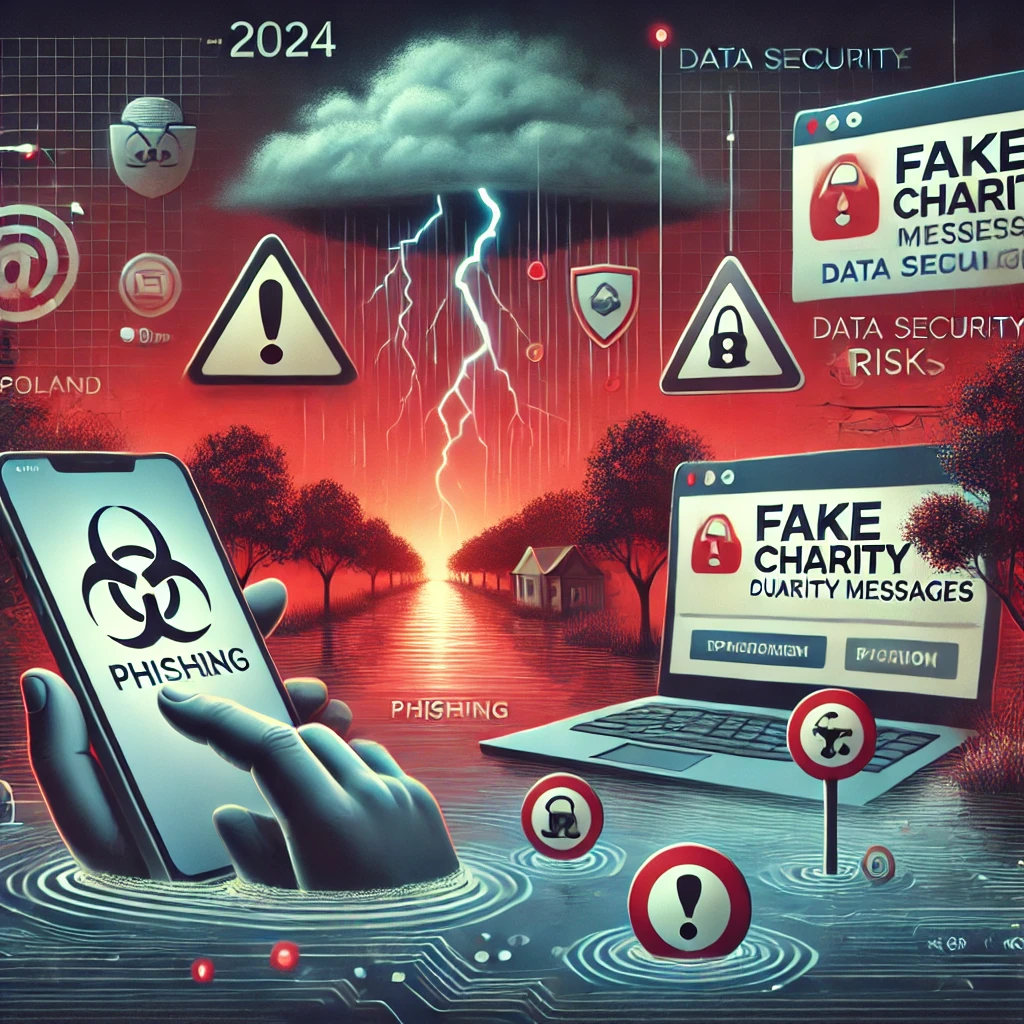 We wrześniu 2024 roku, gdy południowa Polska zmagała się z tragiczną powodzią, cyberprzestępcy wykorzystali chaos, przeprowadzając liczne ataki phishingowe. Ich głównym celem było wyłudzenie danych osobowych oraz oszukanie osób chcących wesprzeć poszkodowanych finansowo. Fałszywe zbiórki i linki do stron wyłudzających dane zaczęły masowo pojawiać się w mediach społecznościowych, a także w wiadomościach SMS i e-mail.